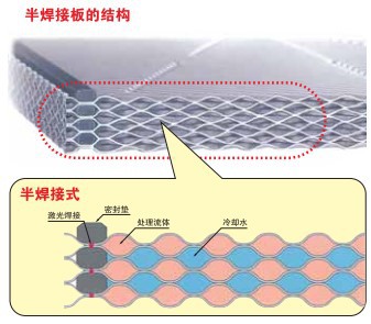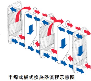 半焊式香蕉视频在线网站是一種用兩張板片沿密封槽采用激光焊焊接成板片,把板片對用密封墊密封,以疊加的形式夾裝在固定壓緊板、活動壓緊板中間的換熱器。